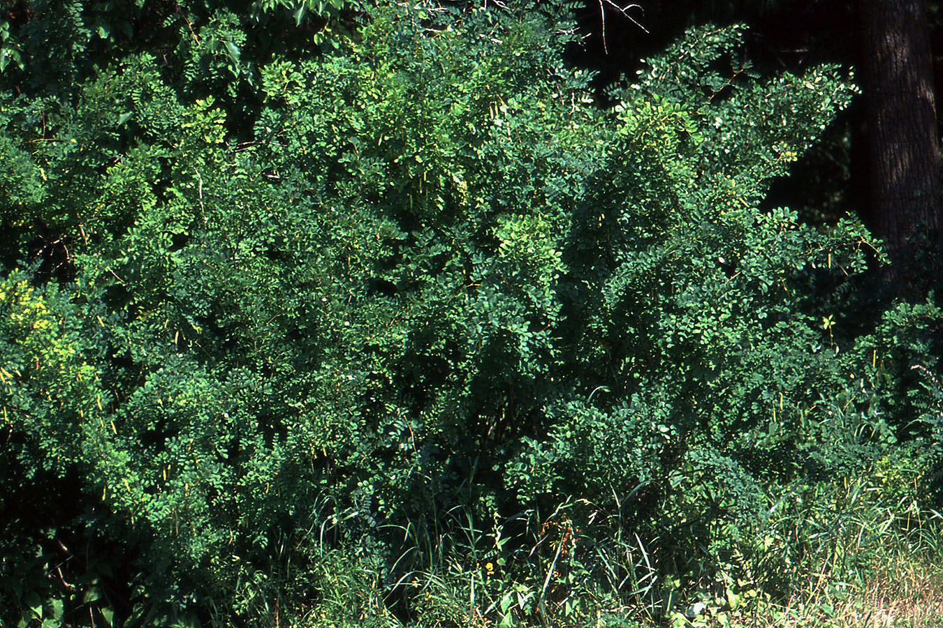 Caragana, also called Siberian peashrub, is a large upright shrub. It provides dense cover for wildlife and is ideal for the shrub row in a windbreak. In Canada, it is planted as single row windbreaks. Caragana is adaptable to conditions of extreme cold and wind. It tolerates a wide range of soil types, including alkaline and saline soils. Grasshoppers can be a problem, but very rarely kill an established plant.